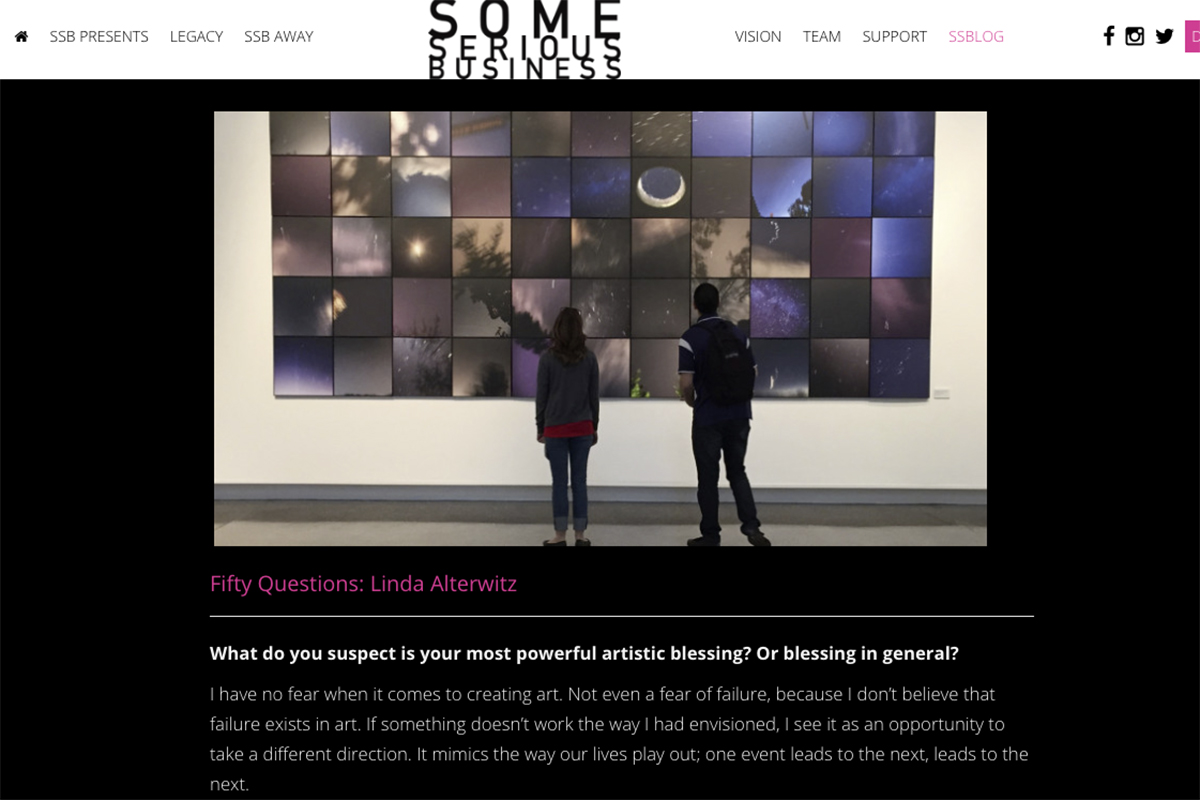 2019, Portfolio Showcase 12 Exhibition & Publication at Center For Fine Art Photography, Fort Collins, CO read more 2018, “SUPERPOWERS: THE HEALING POWERS OF THERMOGRAPHY” Exhibition and Presentation, MAYO CLINIC Humanities in Medicine Symposium, Jacksonville, FL read more Ongoing Contributing Writer and Editor for LENSCRATCH MAGAZINE: ART + SCIENCE read more 2018, “INFINITE POTENTIALS” at the New York Hall of Science read more 2018, “TPS 27- THE INTERNATIONAL EXHIBITION” Frisco, TX read more “PLURAL” UNLV Barrick Museum of Art, 2018 Las Vegas, NV read more INCLUSION IN MCQ FINE ART GALLERY PRINT PORTFOLIO PROJECT: 2018-ongoing read more INTERNATIONAL FESTIVAL OF NANO ART: September 25-October 3, 2018 read more COPS & CANVAS 2018, an annual art event in support of LVMPD Foundation read more SOME SERIOUS BUSINESS: 2017 (Interview with Linda Alterwitz) read more Previous Page 1 Page 2 Page 3 Page 4 Page 5 Page 6 Page 7 Page 8 Next