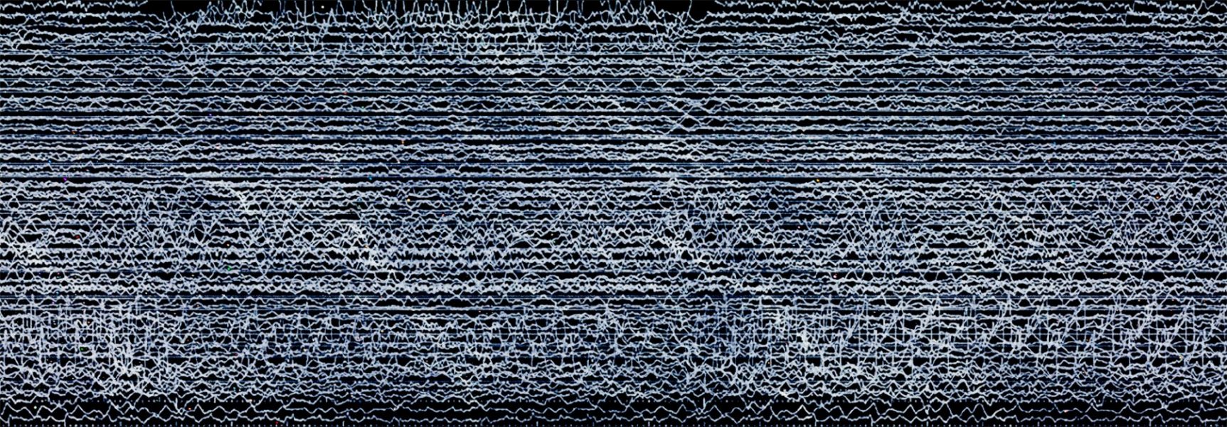 "Matters of the Brain #11" from the series Matters of the Brain, project Once Ocean. This piece (24.4″H x 70″W) is fabricated as a computerized jacquard loom woven cotton tapestries. Edition of 3 + 1 AP each