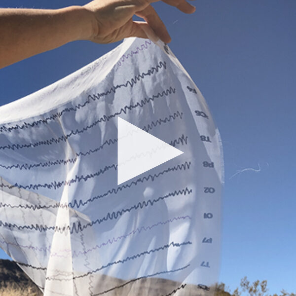 I printed sawtooth waves of the brain onto medical gauze and released the printed data into the natural environment, specifically the stated place of sanctuary of each participant. I photographed the movement of the gauze through currents of air or water, wrapping, suspending and submerging the fabric within the environment.