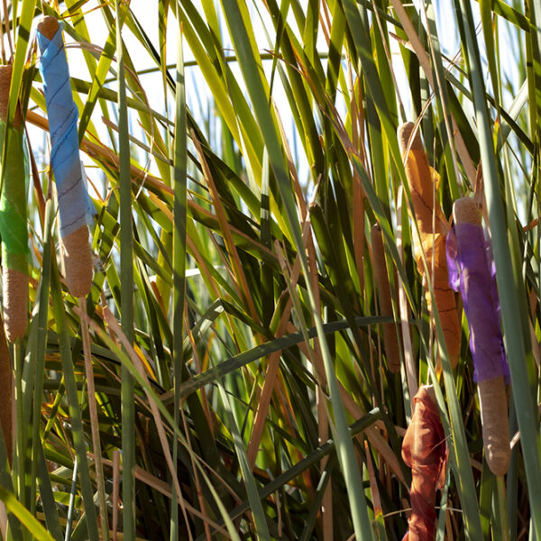 As the printed medical gauze became frayed and torn, it reminded me of the invisible threads that bind human beings to Earth. It is my hope that this work will offer viewers valuable, visual acknowledgment of the fragile and important connection to our planet that is needed for our common survival.